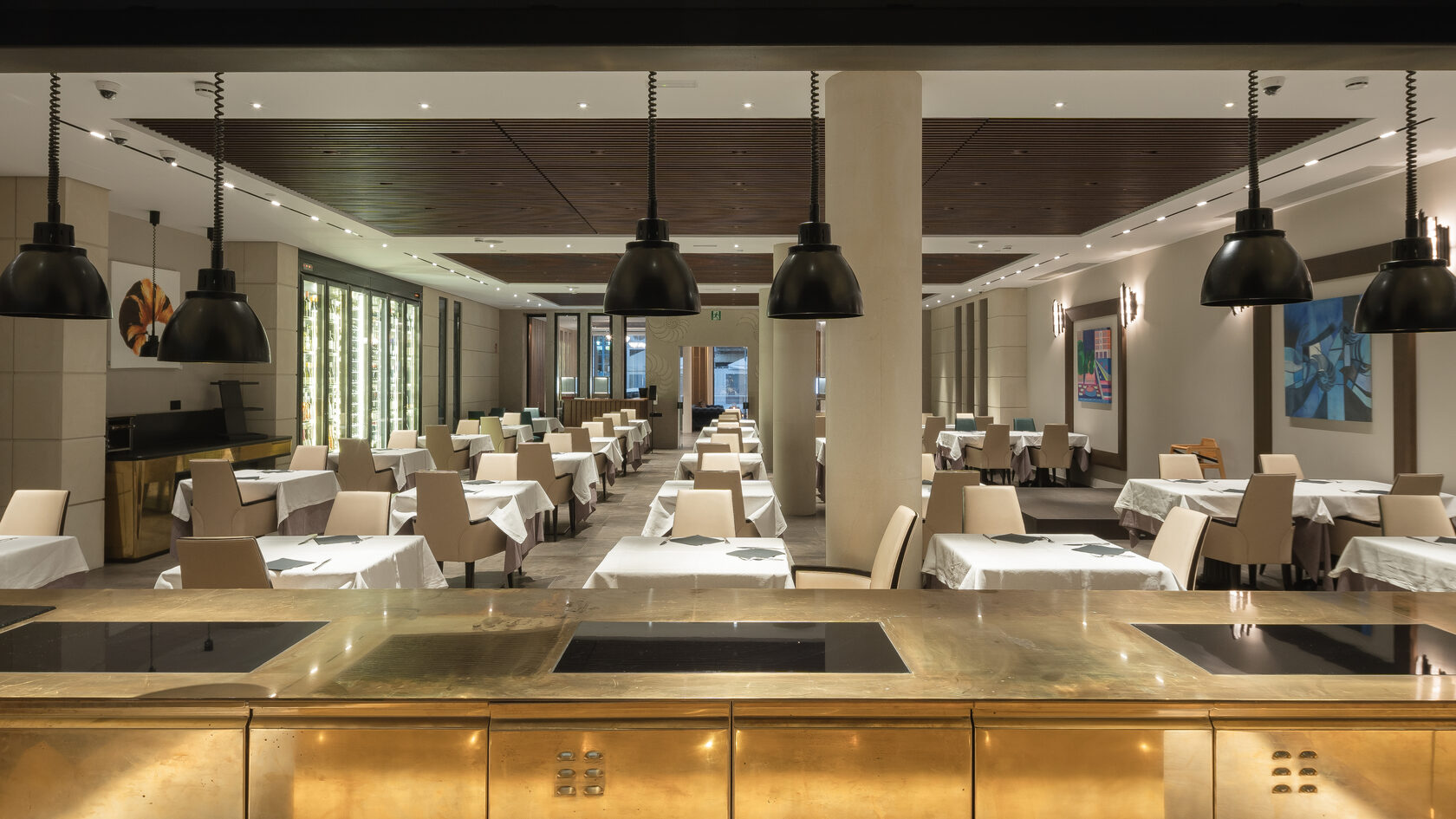 Уникальный show-cooking - главная достопримечательность этого зала, и отлично подходит для частных гастрономических ужинов с дегустацией вкусного вина.